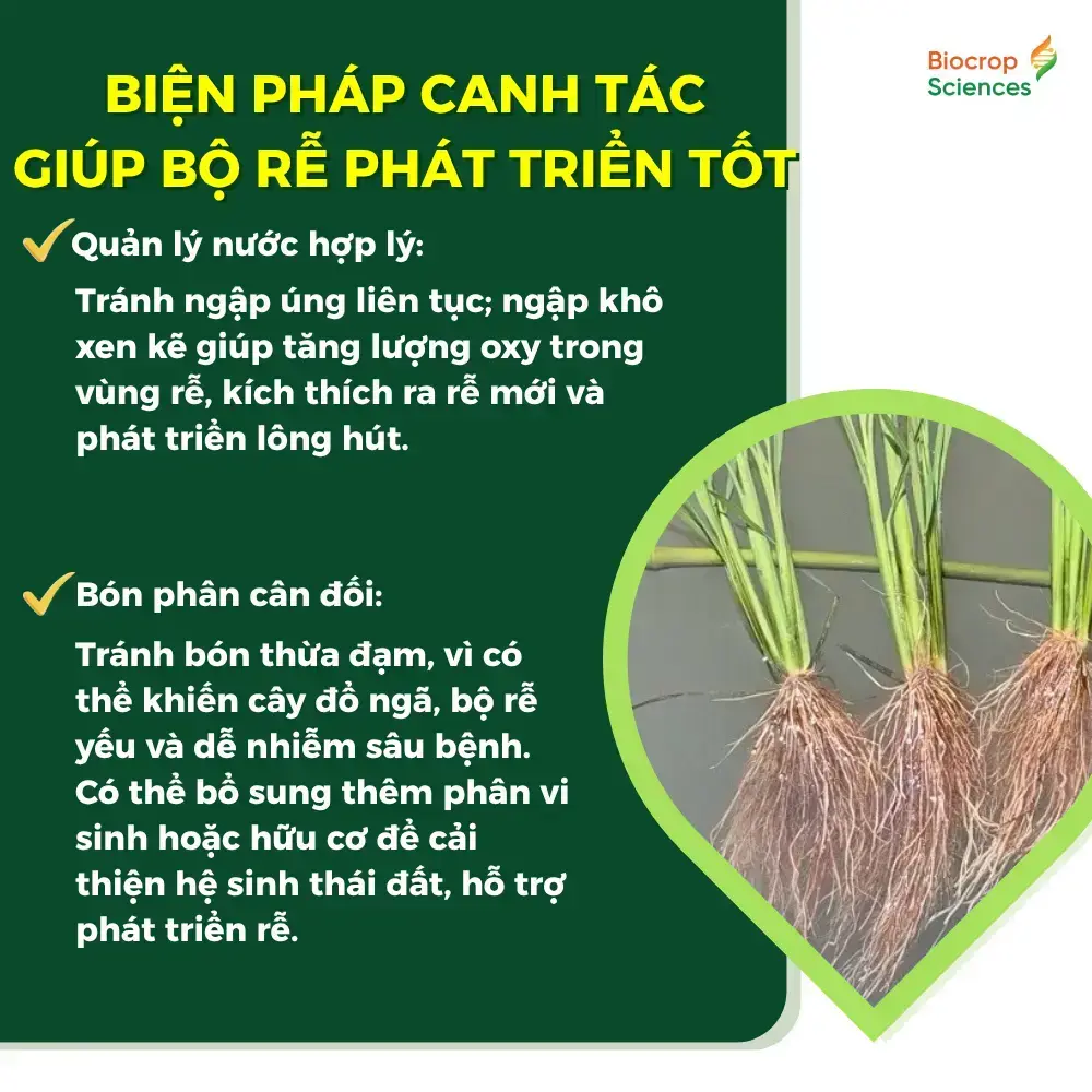 Hệ rễ khỏe còn góp phần cân bằng ion, hạn chế tích tụ độc tố như Fe²⁺, H₂S trong đất, từ đó hỗ trợ cây sinh trưởng tốt hơn.